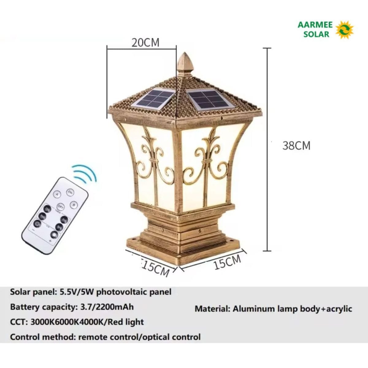 Aarmee Solar Antique Gate Light – 24 LED, Remote, 3 Color Modes (Solar Only)